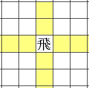 ○この駒はタテヨコ斜め8方向に1マスだけ進む事が出来ます。