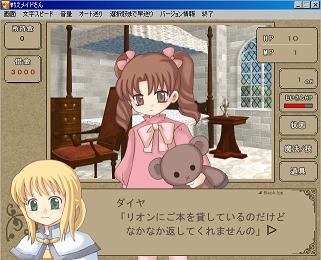「戦えメイドさん」 http://gy2.eek.jp/ です。 ストーリー、 主人公は普段はおっとりした天然系だが、危機に直面すると怖いネーサンに豹変するという二重人格。 彼女は誤ってカネモッチー家のツボを割ってしまった為、弁償の為にカネモッチー家のメイドとなる事になった。 カネモッチー家の息子達は一癖も二癖も有る連中で、彼女に様々な仕事を申し付けるのだが、 彼女はメイドなのに何故かバトルでそれをこなしていく事になる。 ゲーム内容はいかにも趣味で好き勝手作られたという感じのRPGで、ぶっとんだ設定とストーリー展開。でも、ゲームとしては作り込みで完成度を高めているという、フリーゲームならではの面白味が味わえるのが本作では無いだろうか。 フリーソフトだからフリーソフトでしか出来ない事をやろうというソフトは案外少ない様で、 本作程好き勝手作られたネタで素直に楽しめたゲームは無かったです。 ネタは好き勝手だけれども、キャラクター等も良く作りこまれていて、 フリーゲームとしては魅力的な作品に仕上がっていると思います。 休日で丸一日空いた位の時間持ちの人にオススメします。 |
